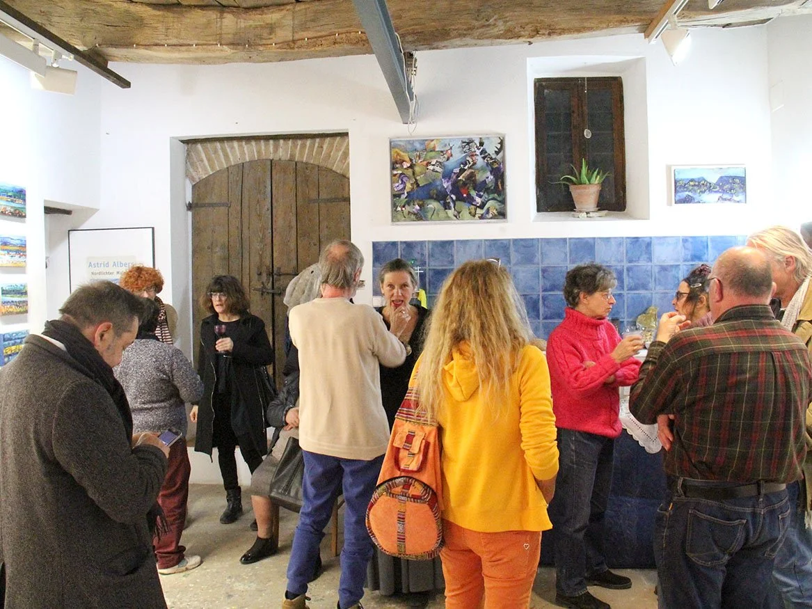 Eine umfangreiche Präsentation der Arbeiten von 2017/18 schliesst ein bewegtes Jahr ab. An zwei Sonntagen ist das Atelier für Besucher geöffnet, es gibt Aquarelle, Leinwandbilder und Arbeiten auf Papier (Drucktechnik, Acryl + Ölkreide) zu sehen. Die „Nordlichter“ von 2017 sind auch hier im Mittelpunkt. Ein kleines Büfett mit Wein und Spezialitäten der Region verlockt zum dableiben und geniessen.