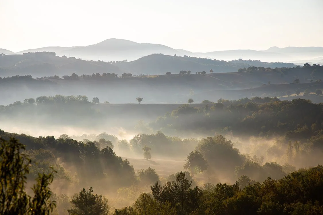 Morgens steigt vorsichtig der erste Nebel aus dem Flusstal hoch,