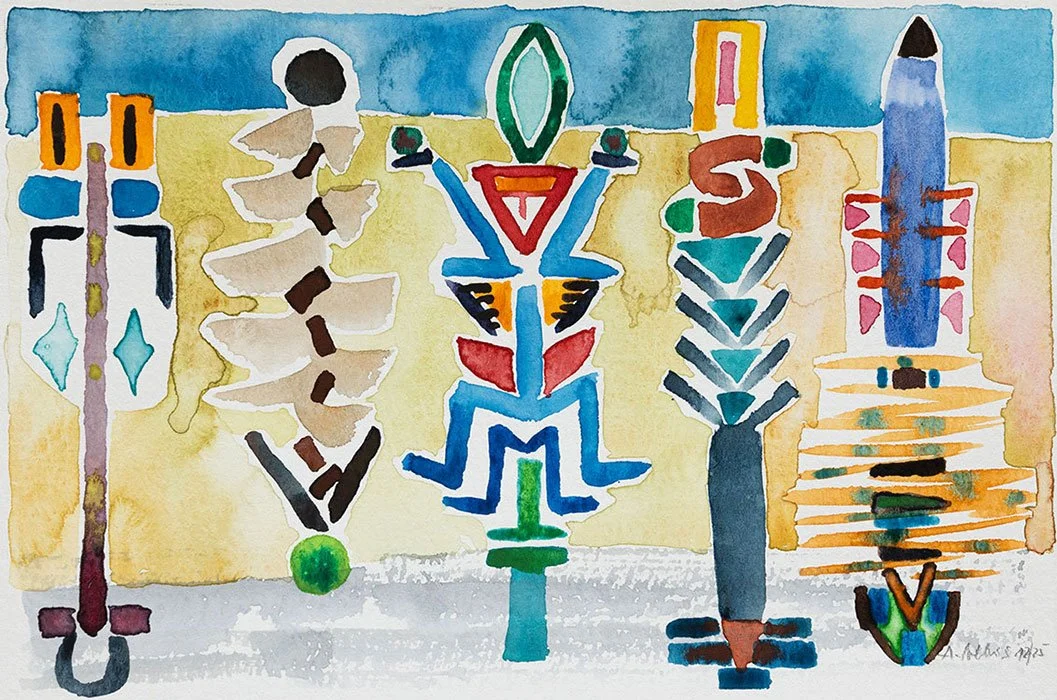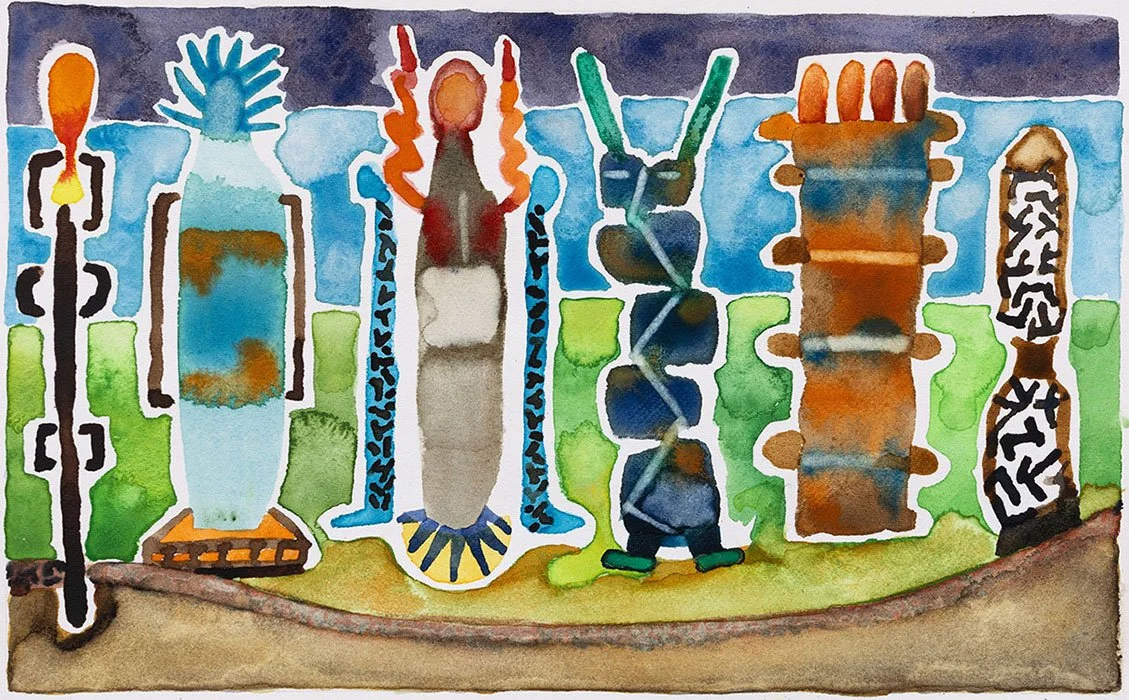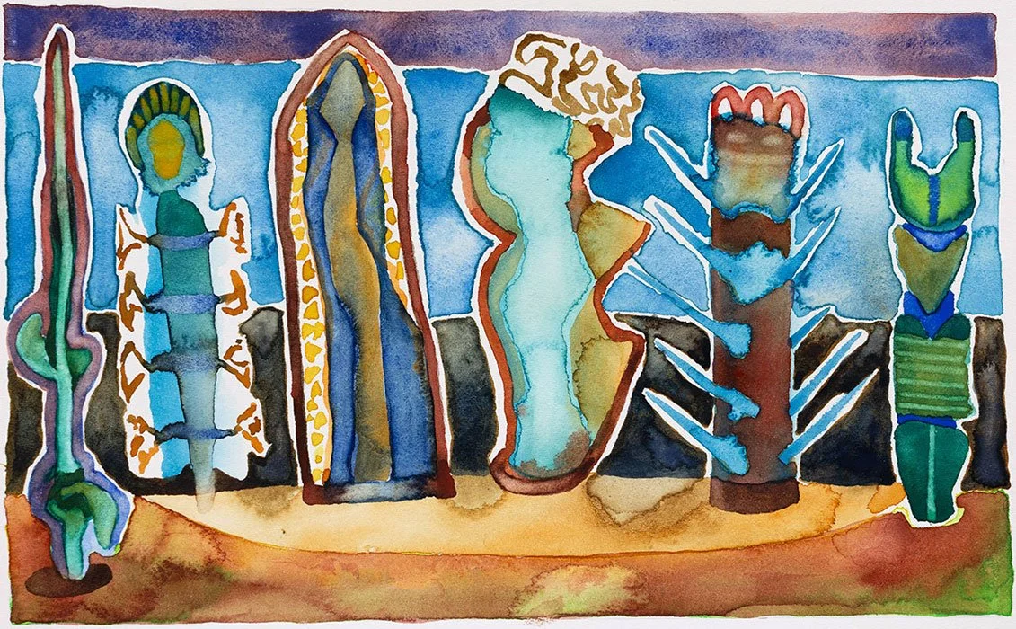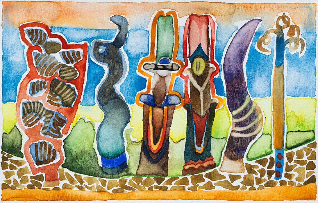 Die Idee: Geisterfiguren sollen aufgereiht nebeneinander stehen, sich ergänzen, Wesen aus verschiedenen Welten, die sich im Bildraum begegnen.